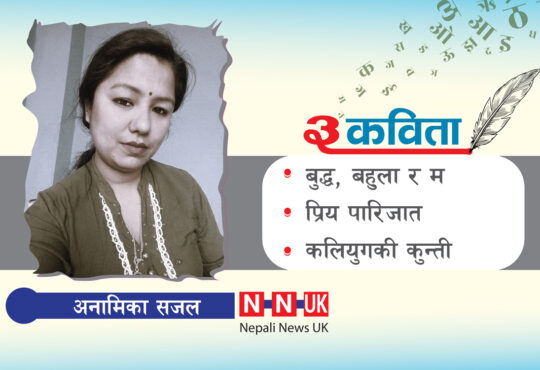 युके विशेषसाहित्यप्रयास दुमी राईका ३ कविताNepalinewsuk1 year ago17 December 2024790हाम्रा यादहरू भेटिएर कफि चिसो भइन्जेल एक-अर्कालाई हेरेर टोलाइरहन्छन् ।